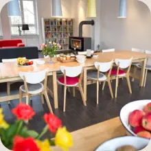 Solltest Du extern übernachten, dann ist eine Tagesgastpauschale von 35 € pro Tag zu bezahlen, die Deine Verpflegung beinhaltet.Hier geht´s zur Sampurna -Zimmerbuchung: